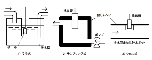 水モニタを設置する目的および設置場所により、図3.2.4に示すような各種の方式がある。